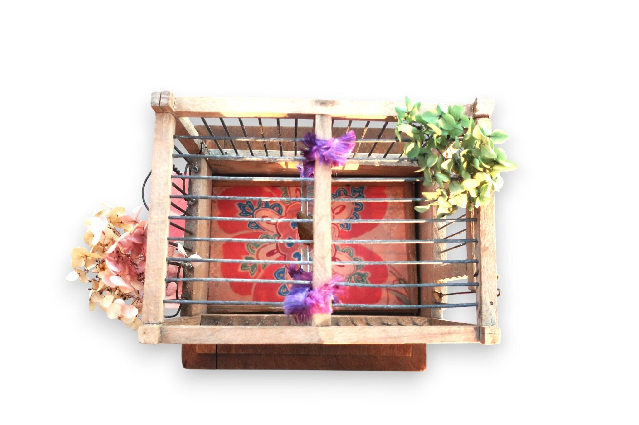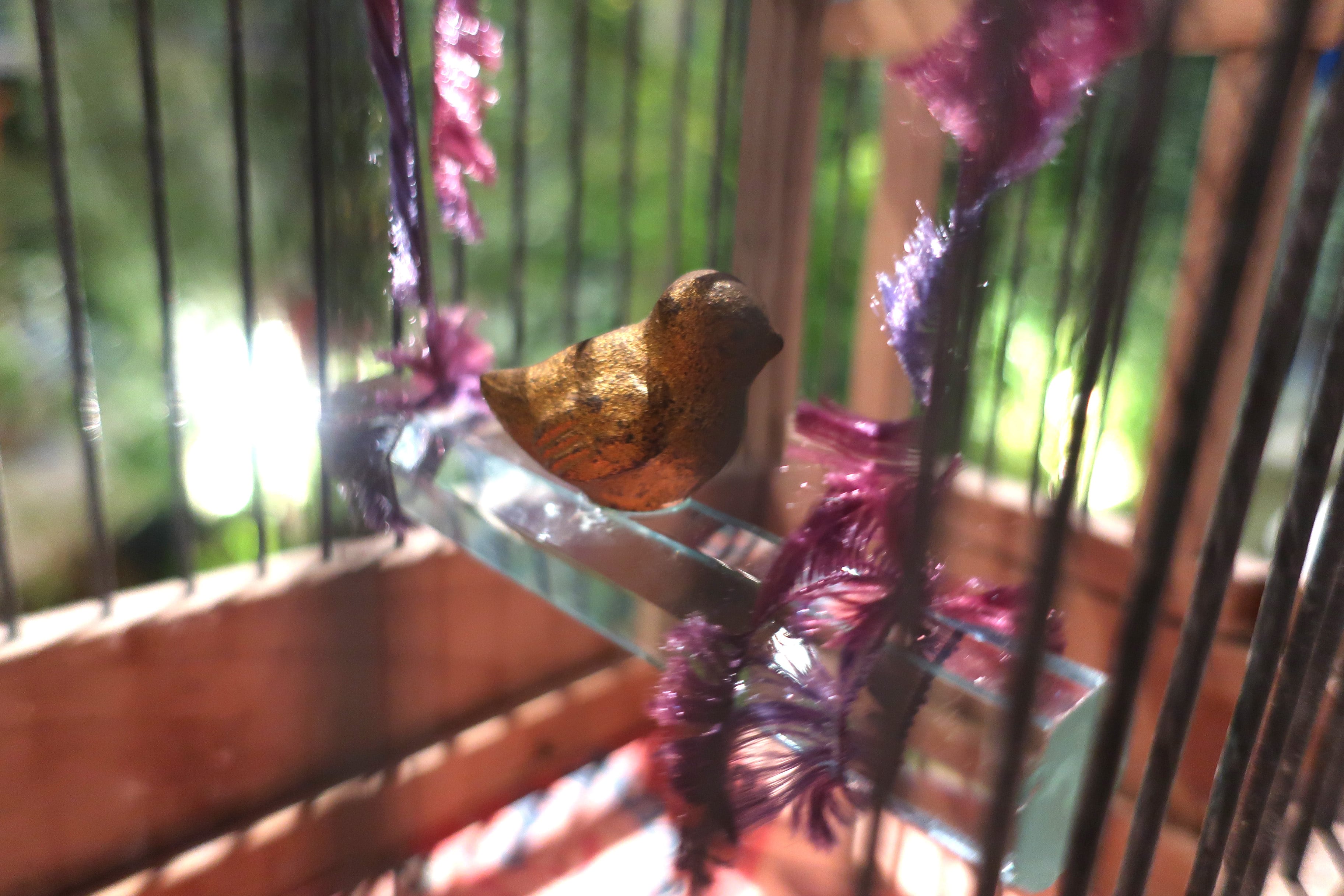 -置き物飾り- 【古鳥籠と黄金福良雀】