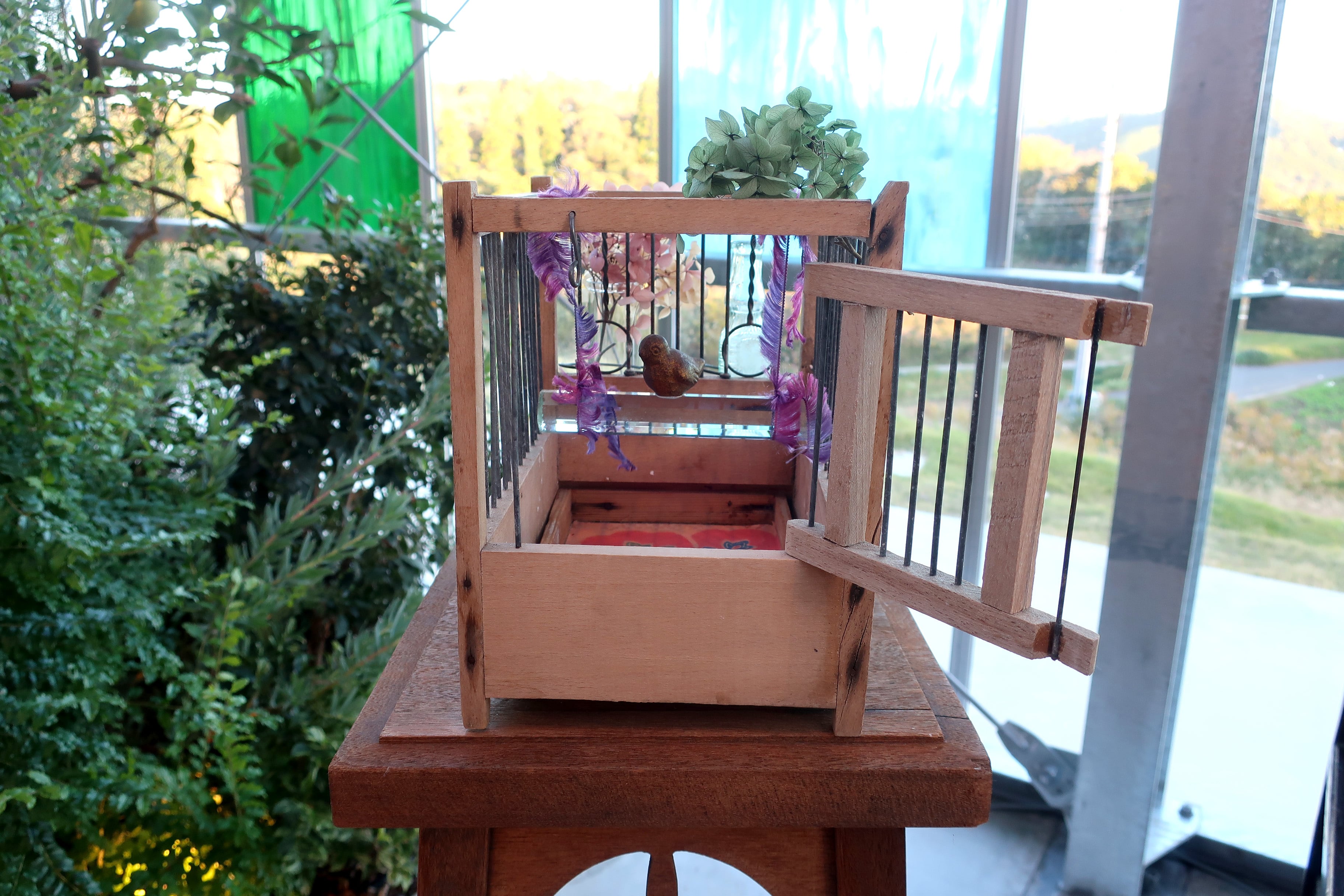 メッセージ:鳥籠って惹かれますよね!クリスタル棒と福良雀もキレイデショ!お花も飾って~