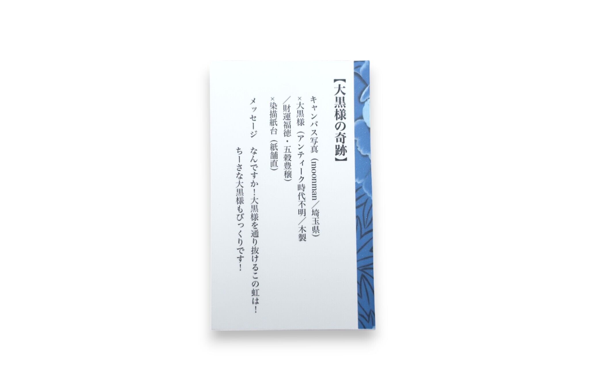 メッセージ:なんですか!大黒様を通り抜けるこの虹は!ちーさな大黒様もビックリです!